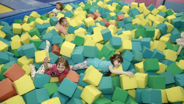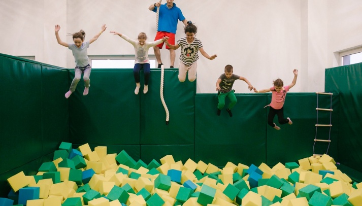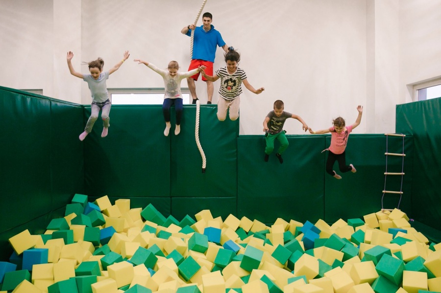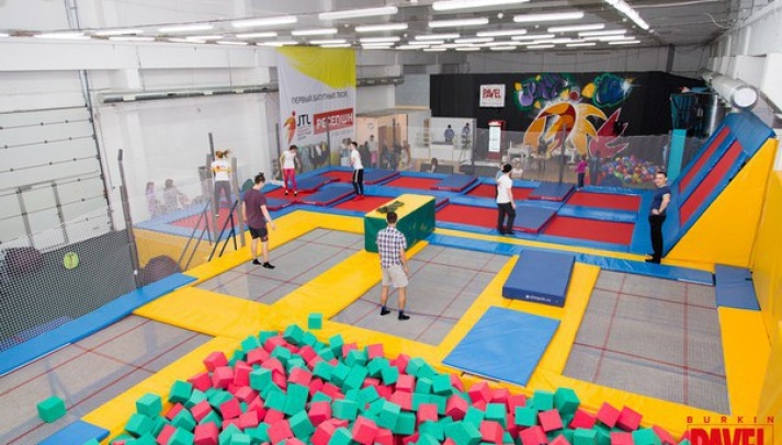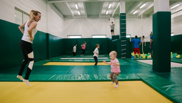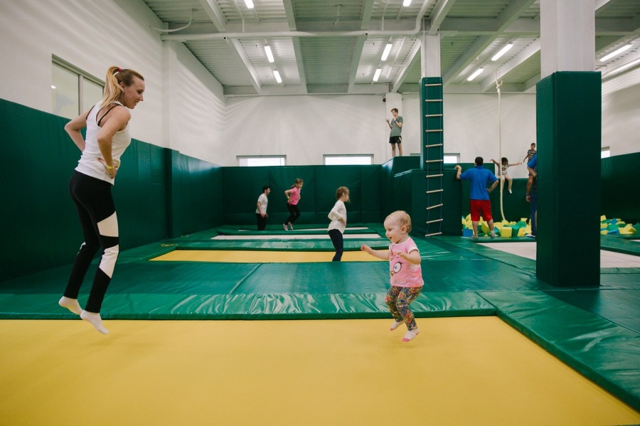 Батуты - это полезно для физической формы. Сюда можно приходить с детьми. Можно арендовать зал целиком для детского дня рождения.